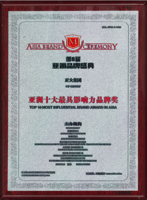 9月9日,第8屆亞洲品牌盛典在香港隆重舉行,享譽全球的現代農牧產業企業典范——正大集團以雄厚的實力穩居“亞洲十大最具影響力品牌獎”的第一位。正大集團北京董事長辦公室楊海浩總裁代表集團參加了頒獎典禮并領獎。